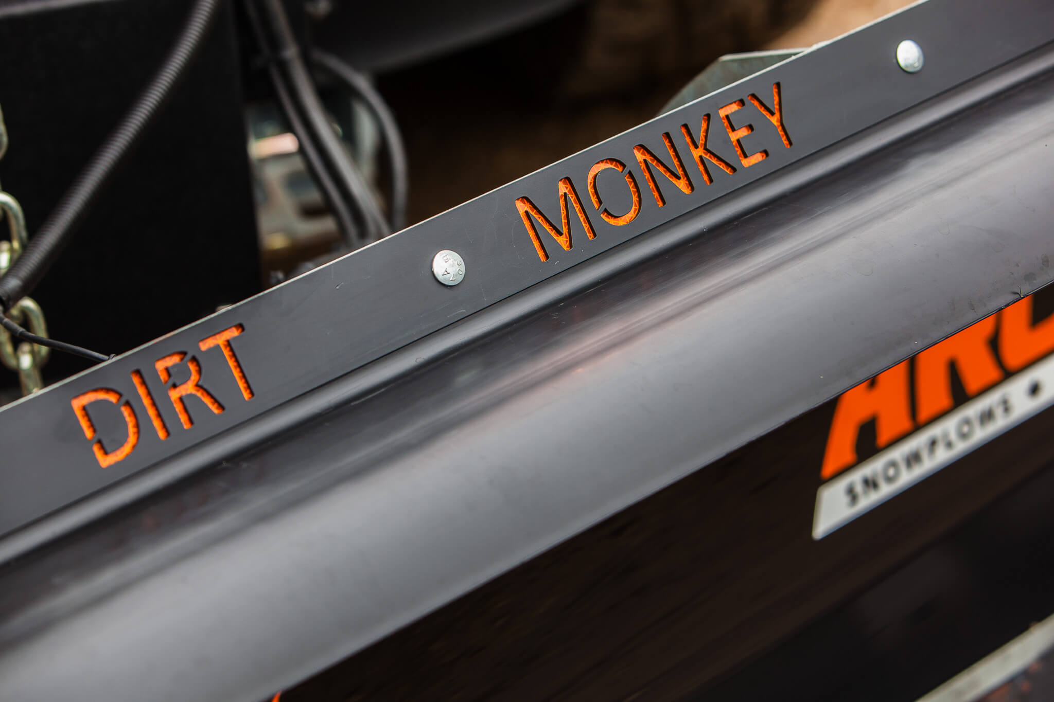Durable black poly moldboard with striking Dirt Monkey graphics and a laser-cut logo strap
